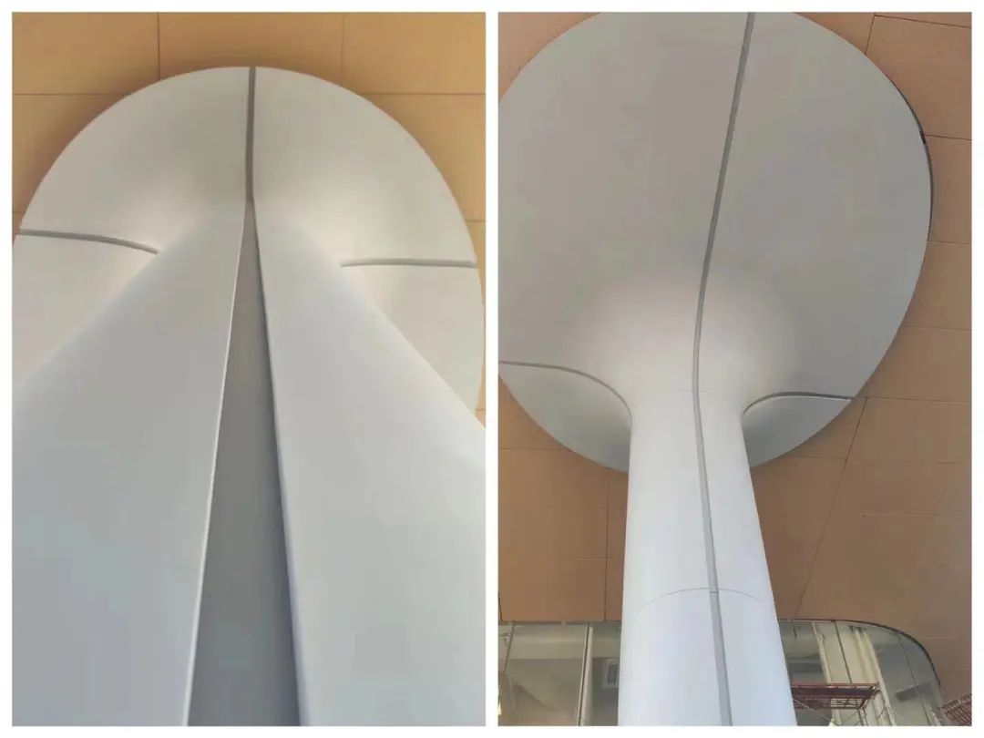 得益于UHPC優(yōu)異的材料屬性,能制作大規(guī)格及大異型的預(yù)制構(gòu)件,為建筑幕墻裝飾行業(yè)帶來了更多的可行性。完工后的柱體造型流暢,美觀獨(dú)特,現(xiàn)代輕奢。窄橫縫、寬豎縫的建筑成品更給人視覺上”無橫縫“的效果。UHPC表面質(zhì)地細(xì)膩,讓其融入水景,與水面景觀相輔相成,互相促進(jìn)。